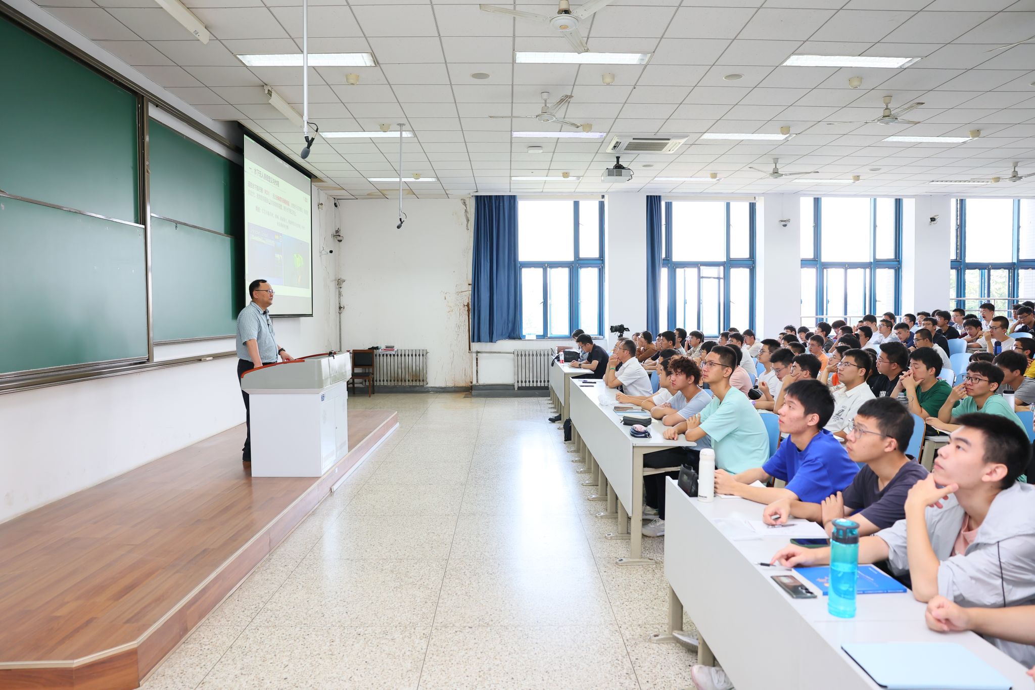 走向深蓝,走入深蓝。在宋保维校长的介绍中我们逐渐了解到,水下无人系统研究是一个多学科交叉融合问题,涉及水下总体设计技术、水下能源与动力推进技术、导航控制技术、水声通信技术及信息融合技术等多个关键技术。学生无论是对哪个学科问题感兴趣,都可以在365英国上市公司官网的课程培养中找到契合点,在学习本专业的同时,还能接触到其他方面的知识,真正做到了一专多能的复合型人才培养。宋校长的讲课深入浅出、阐述透彻,教室气氛热烈,同学们热情高涨,认真聆听。
