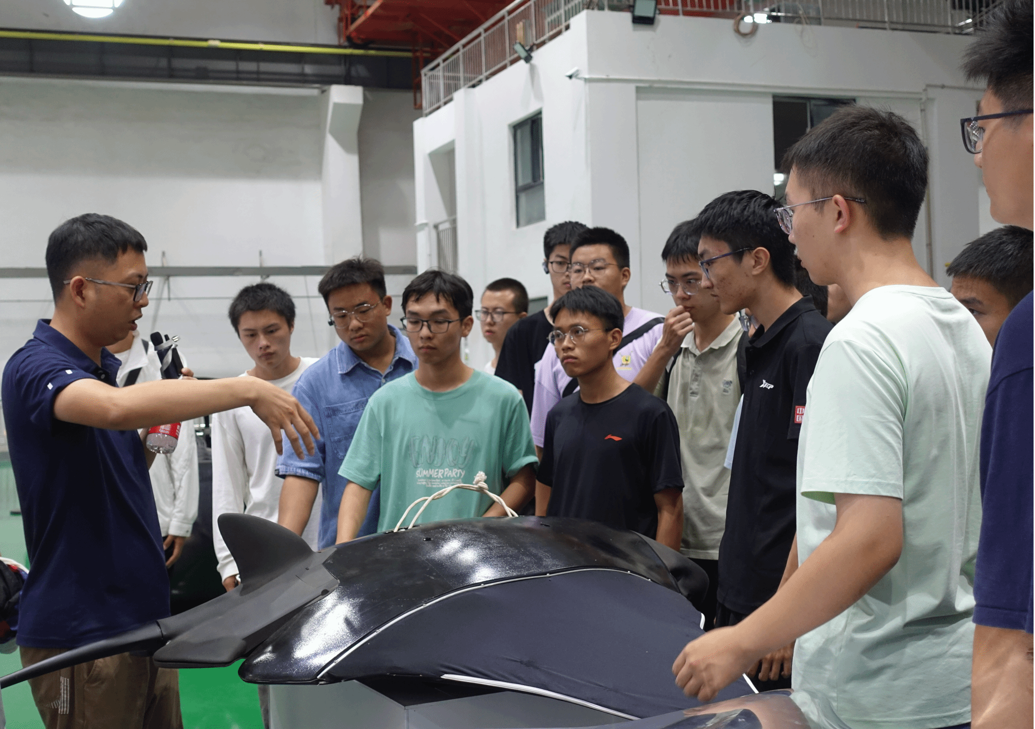 为更好地发扬“敢为人先、攻坚克难、团结协作、无私奉献”的航海精神,培养同学建设国防、为国报效的爱国情怀,促进新生对学院的进一步了解,9月17日,在翱翔重点实验室叶鹏程老师的带领下,365英国上市公司官网2023级本科新生282人前往实验室开展参观学习活动。活动有序组织,同学们以班级为单位进行参观。