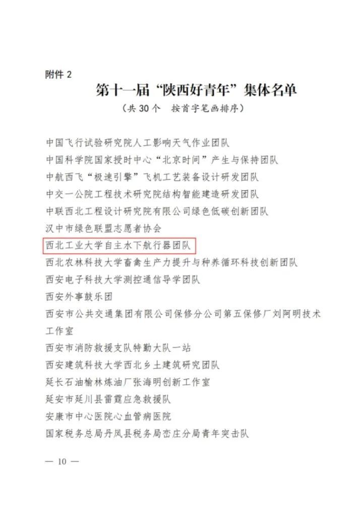 近日,由团省委、省委宣传部、省委文明办、省委政法委、省委网信办、省委军民融合办、省委直属机关工委、省委教育工委、省科技厅、省国资委、省青联等单位共同举办的第十一届“‘中国梦·青年志’——寻找身边的陕西好青年”主题活动结果揭晓,我院自主水下航行器团队被推选为第十一届“陕西好青年”集体。据悉,本次活动经推报、初选、复核、展示、评审、公示等环节,共30个集体和61名个人获评第十一届“陕西好青年”称号。