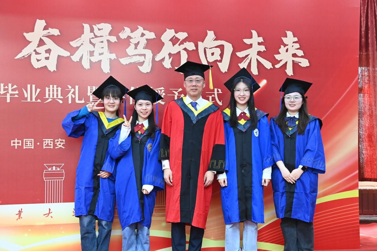 典礼将近尾声,拨穗正冠仪式正式开始。同学们纷纷上台,领取证书,并与老师们合影留念。老师和学生们脸上都洋溢着温暖的笑容,这份感动和温馨将成为毕业生们永远难忘的记忆。