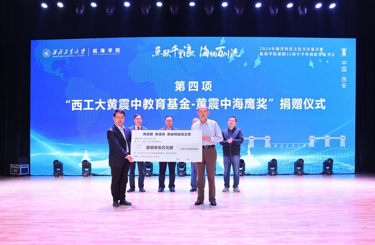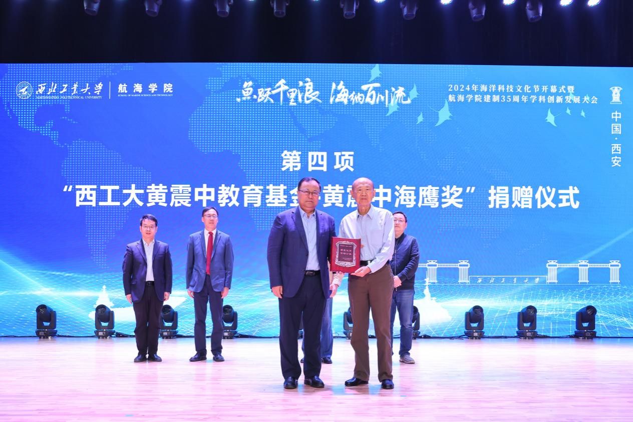 开幕式上举行了“365英国上市公司官网黄震中教育基金--黄震中海鹰奖”捐赠仪式。宋保维、潘光、学校对外联络办公室主任杨铭接受捐赠。