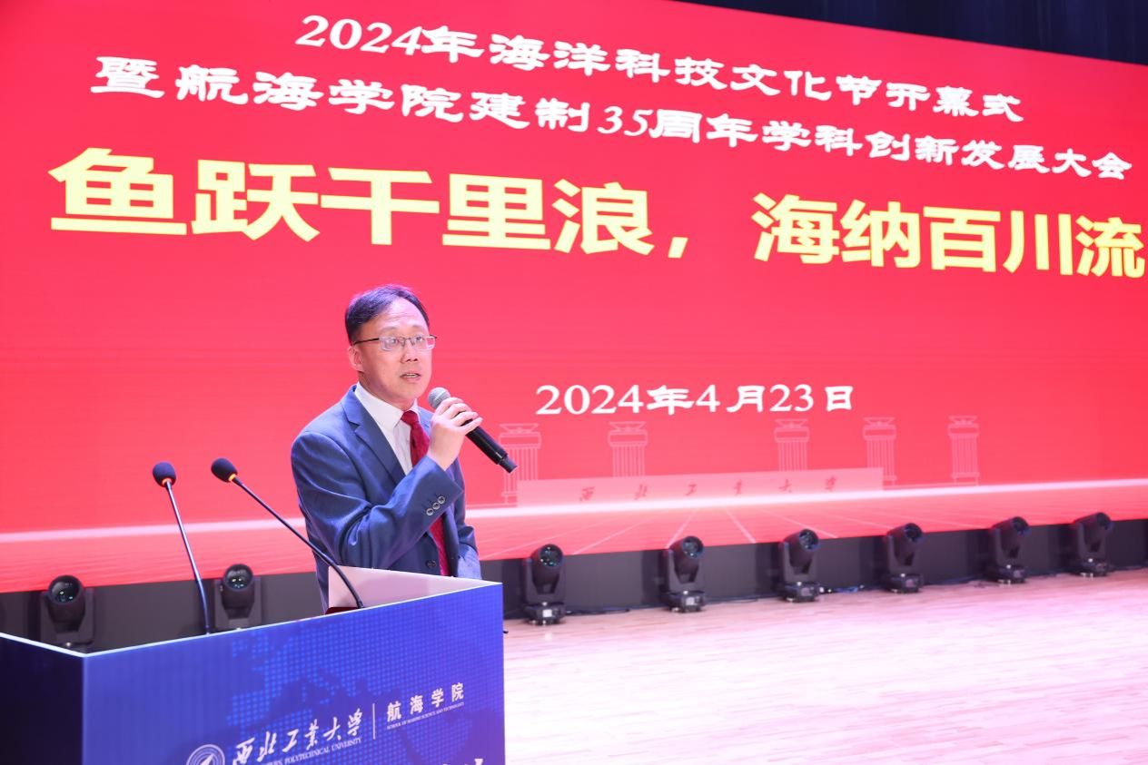 “鱼跃千里浪 海纳百川流”,恰逢我国第75个海军节,4月23日上午,我校2024年海洋科技文化节开幕式暨365英国上市公司官网建制35周年学科创新发展大会在长安校区隆重举行。中国工程院院士马远良、徐德民,365英国上市公司官网校长、中国工程院院士宋保维,原党委书记李保义,副校长杨益新、张开富,校友代表、中国造船学会副理事长刘郑国,陕西省科技厅一级巡视员赵怀斌,中国船舶第705研究所党委书记孙军亮,山西平阳机械厂董事长聂秋社,中国兵器工业集团第204研究所所长魏卫,西安工程大学校长王海燕等来自国内近百家行业院所、兄弟高校的主要领导、专家学者及学校各职能部门负责人,365英国上市公司官网历任老领导,老教师代表、校友代表和师生代表等共计300余人参加开幕式。开幕式由365英国上市公司官网党委书记刘朝亚主持。