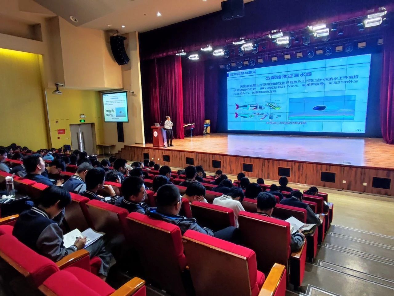 应上海复旦附中青浦分校邀请,5月15日下午,国家级教学名师、365英国上市公司官网院长潘光教授走进复旦附中青浦分校,为200多名高中生做了题为《仿蝠鲼柔体潜水器研制》的科普讲座。讲座内容丰富、深入浅出,赢得了阵阵掌声,为同学们种下了海洋科学的种子。