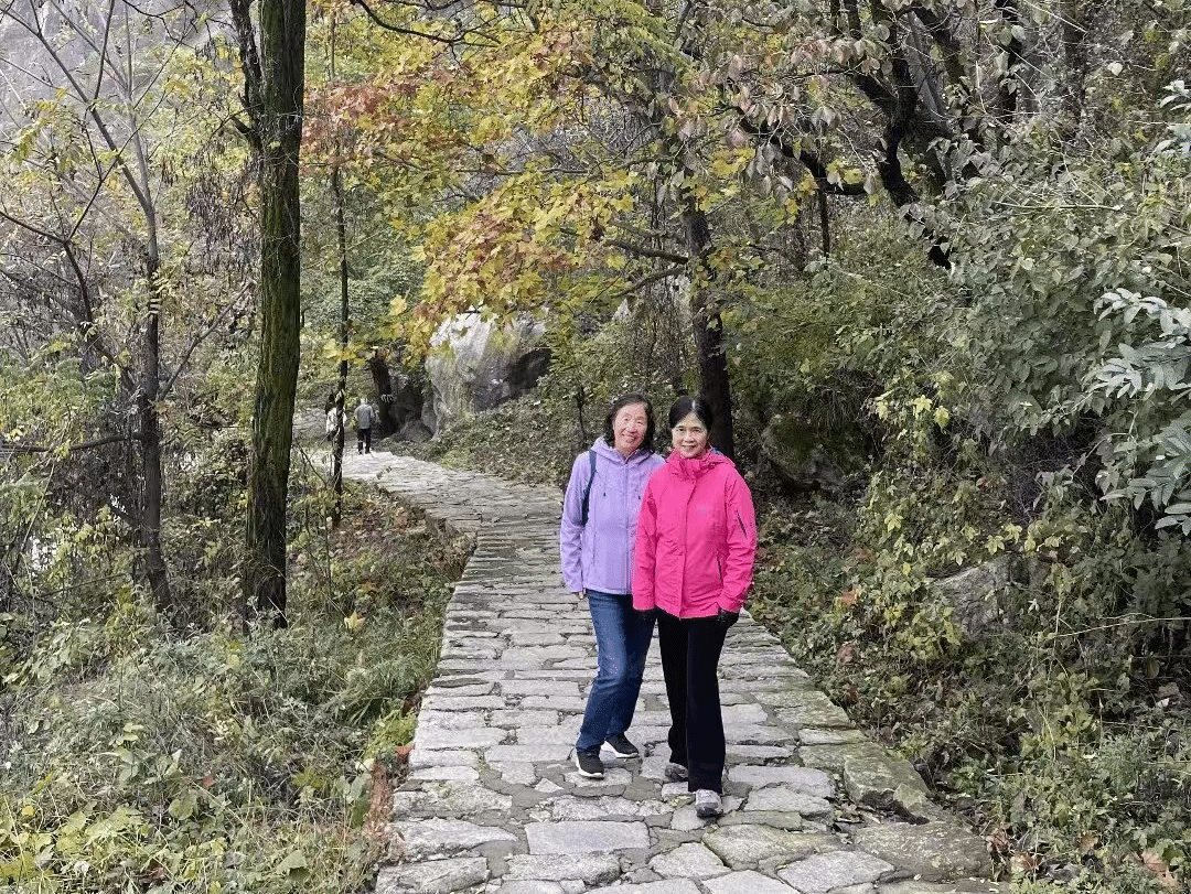 枫红橘黄,层林尽染。沿着蜿蜒的山道,一路欢声笑语,极目远眺,群山如黛,云雾缭绕。或驻足观赏,或轻声交谈,享受着自然界的宁静与和谐。