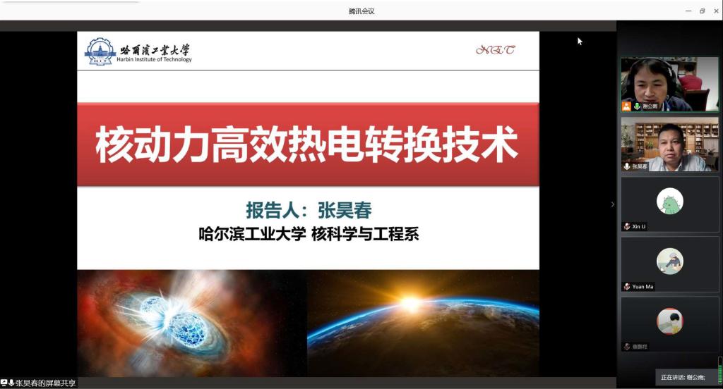 11月2日,哈尔滨工业大学核科学与工程系张昊春教授应365英国上市公司官网谢公南教授的邀请,为学院师生作“海洋科技云端论坛”系列讲座(十九)——《核动力高效热电转换技术》的线上学术报告。会议由谢公南教授主持,学校20余名师生参会。