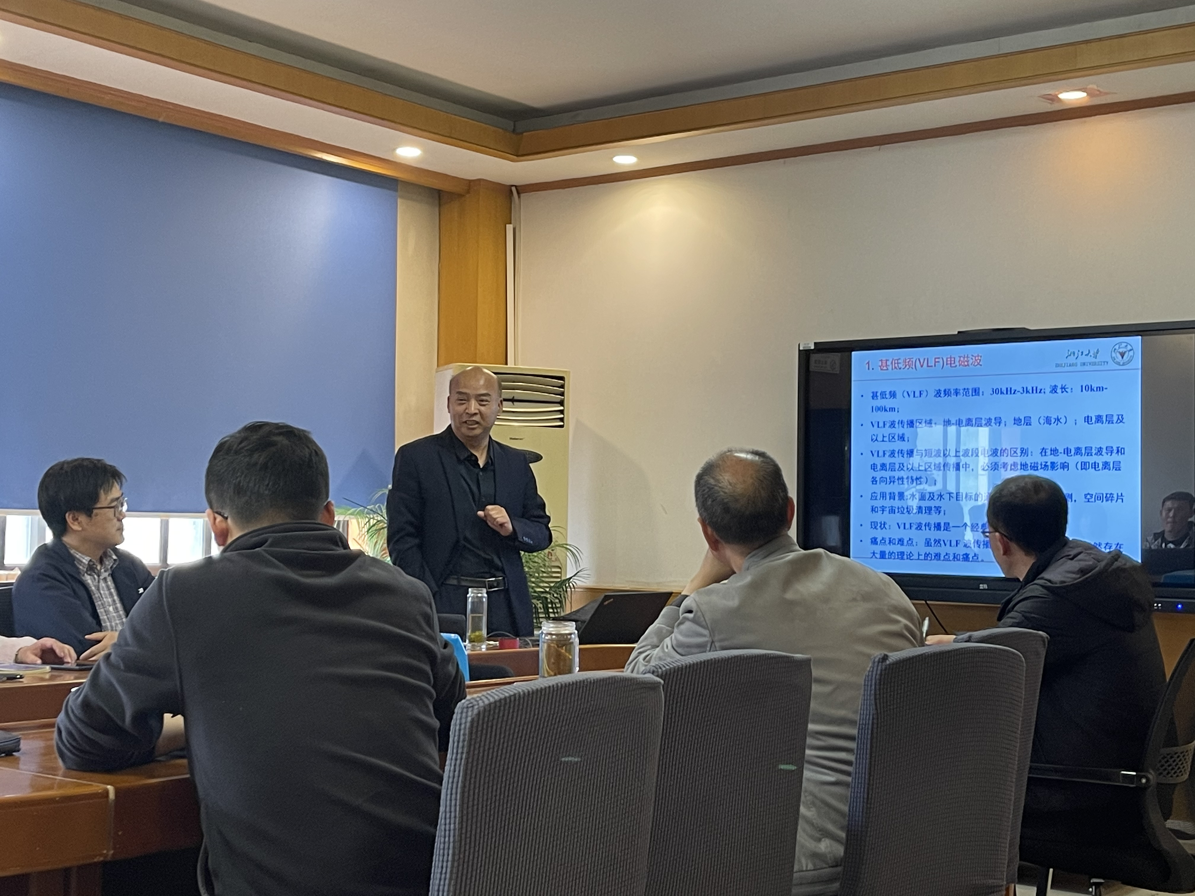 李凯教授首先从甚低频电磁波传播的基本概念、国内外研究背景和现状、基本研究方法等方面介绍了甚低频电磁波传播研究的概况。对国际上80年前和近30年的研究进展分别做了详细回顾,重点对包括Galejs和Stanford团队为代表的学者在VLF波传播计算方面的工作进行了总结。同时,梳理了国内以潘威炎研究员为代表的研究人员在本领域所取得的进展,并指出了当前国内存在的应用探索多、方法研究少的问题。接着,李凯教授对星载VLF天线与传播的理论研究需求进行了分析,介绍了其在水下通信导航方面的应用前景,并总结了所在团队在本领域所取得的研究进展和成果。李凯教授系统介绍了在电离层中VLF天线理论研究、空间VLF近区场及穿透低电离层传播研究两个方向上的系列研究工作,并通过对所出版专著和发表论文的详细讲解阐述了研究创新点和贡献。最后,李凯教授对海底波导等近期正在开展的研究工作与大家进行了分享交流。