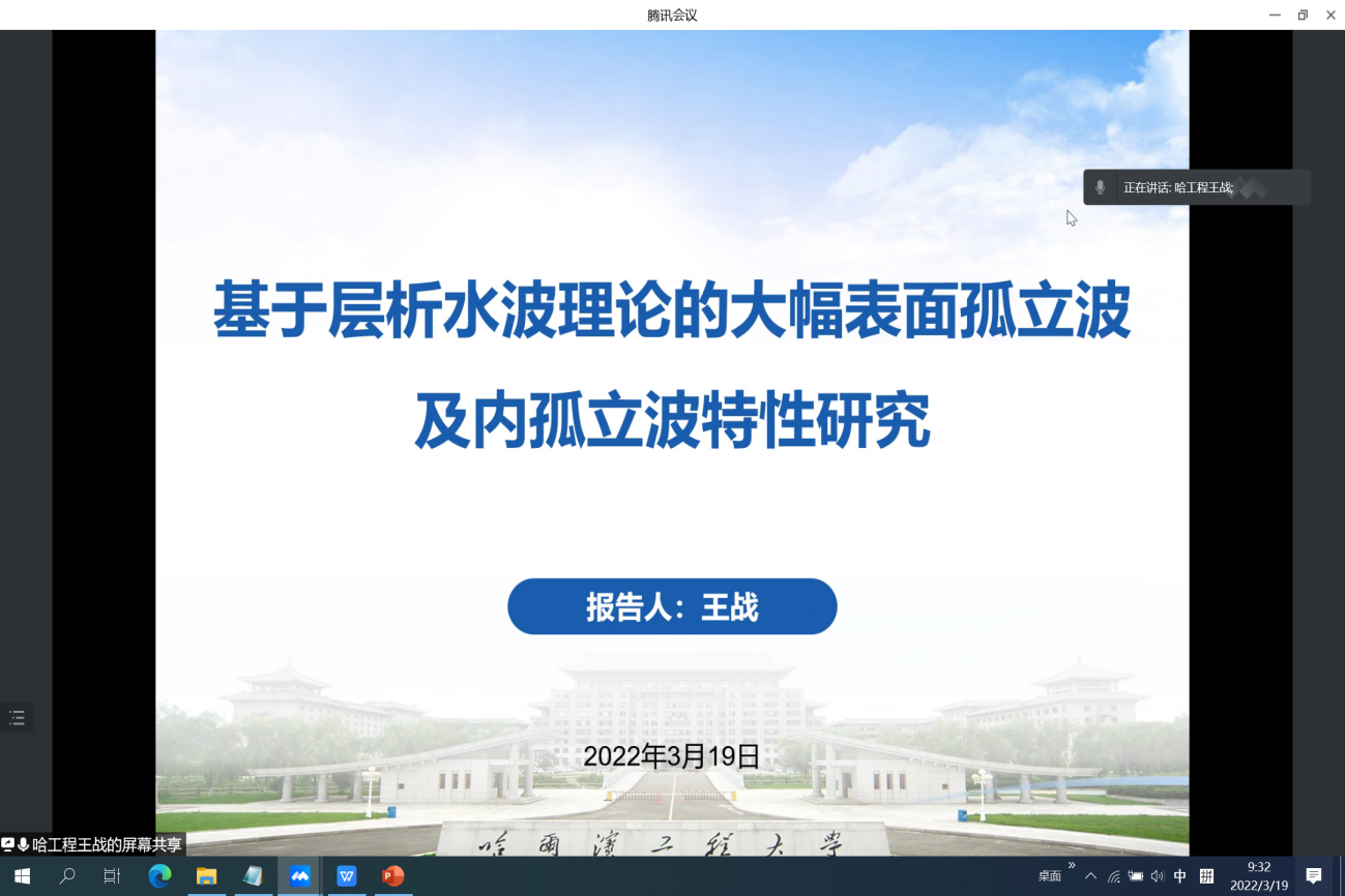 3月19日,应365英国上市公司官网杜鹏副教授的邀请,哈尔滨工程大学船舶工程学院和哈尔滨工程大学青岛创新发展中心联合博士后王站,在线上为学院师生作“航海大讲堂”系列讲座(十四)——《基于层析水波理论的大幅表面孤立波及内孤立波特性研究》的学术报告。会议由杜鹏副教授主持,学院10余名师生参会。