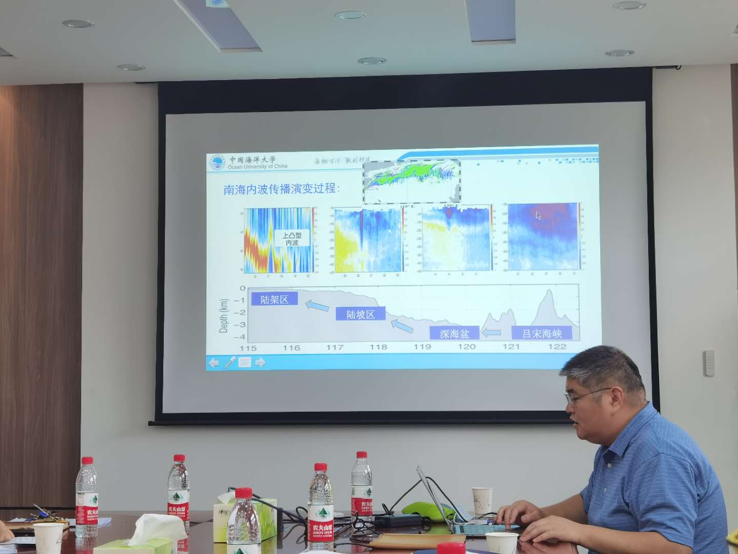 赵玮教授的报告题目为“基于南海潜标观测网的海洋多尺度动力过程研究”。赵玮教授结合自己的学习、工作经历和研究创新实践,从科学背景、南海潜标观测网的构建、南海多尺度动力过程观测研究、南海内波观测研究及应用以及未来展望五个方面进行了阐述。赵玮教授的报告深入浅出,认为海洋的研究应该趋于多尺度共同主导的瞬变过程研究。赵玮教授首先全面介绍了内波、锋面、中尺度涡等现象的机理以及对海洋装备影响大的科学背景。然后介绍了自主构建的以42套潜标为主体的世界上规模最大的区域海洋观测潜标网,以及南海多尺度动力过程观测研究进展。接着重点介绍了南海内波观测研究及开发的多代内波预警预测系统。最后,赵玮教授对未来的工作进行了展望,并希望与365英国上市公司官网合作,结合365英国上市公司官网在海洋声学、水声工程等方面扎实的研究基础,开发新一代内波预警预测系统。随后,参会师生积极发言,热烈讨论,与赵玮教授进行了交流。赵玮教授一一详细地回答了提问。讨论热烈而深刻,与会师生纷纷表示受益匪浅。