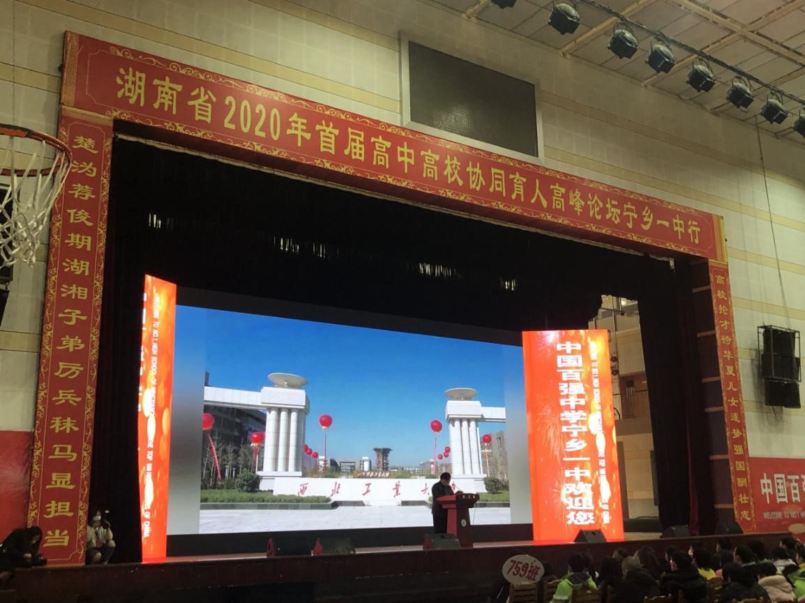 12月27日,举行“湖南省2020年首届高中高校协同育人高峰论坛宁乡一中分论坛”。宁乡一中全体高三学生及家长,高二拓展班学生,以及宁乡市其他兄弟高中部分优秀学生及家长参加活动。宁乡一中体育馆内设立展位,面对面为宁乡市高三学子及家长提供相关情况咨询,为家长和学生仔细解读大学的招生条件。宁乡各级政府高度重视,宁乡市副市长也出席本次活动。湖南组进行面对面现场咨询和高校宣讲。