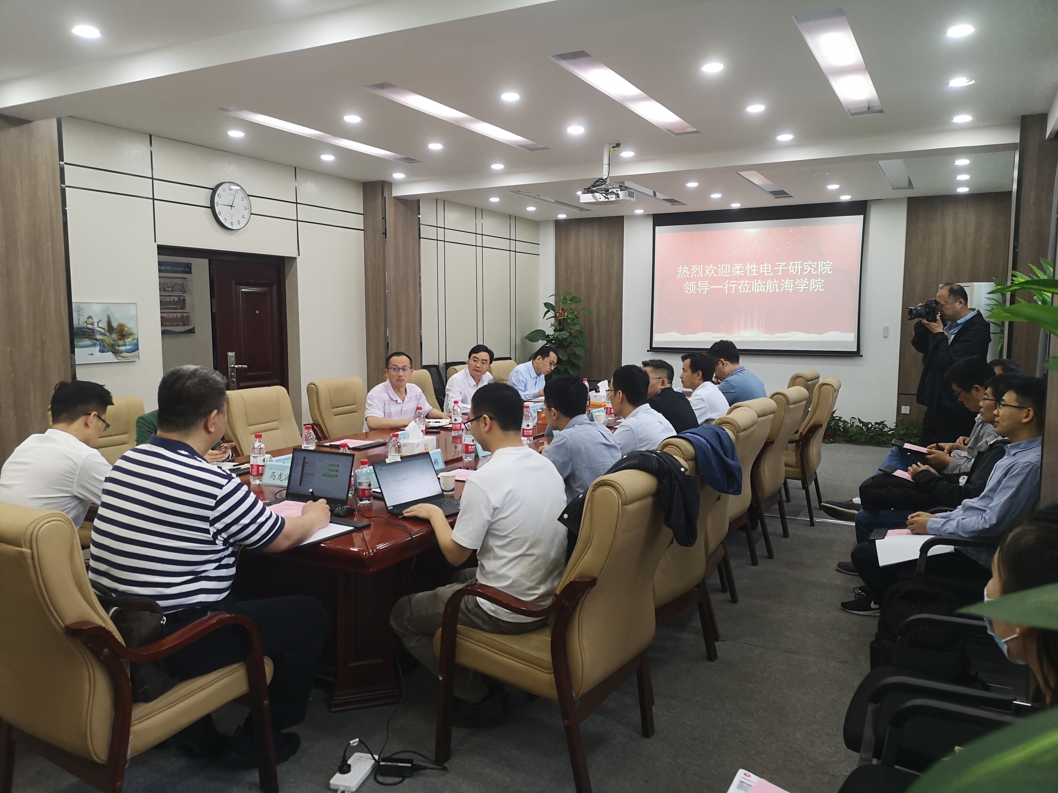 孙华强首先对柔电院教师一行表示欢迎,对柔电院近些年来取得的发展表示肯定,并希望学校最新成立的海洋研究院,要学习柔电院的建设经验,加快推动海洋研究院的全面建设,同时希望365英国上市公司官网和海洋研究院进一步加强与柔电院在基础研究、学科建设、青年教师培养方面的交流和合作。随后高建伟介绍了本次交流的目的,希望进一步了解航海领域的最新发展趋势和应用需求,使柔电院教师的研究能够更加满足学校和国家发展需求。