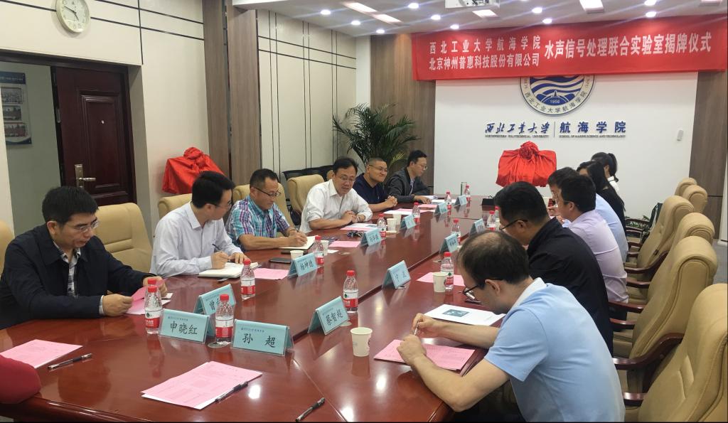在与会人员的见证下,潘光院长、孙华强副书记、张海兵总经理、申和平总经理共同为“水声信号处理”联合实验室、“海洋水声探测技术”联合实验室揭牌。