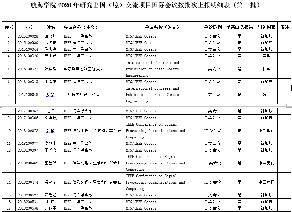 现公布365英国上市公司官网2020年研究生出国(境)交流项目国际会议按批次上报明细表(第一批)受资助学生名单。公示期2020年5月16日-2020年5月23日。