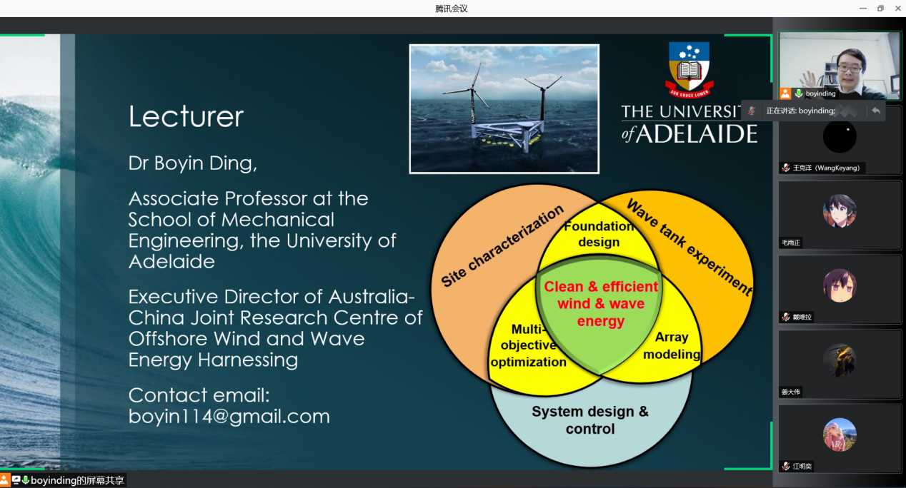 7月6日至8月11日,应365英国上市公司官网任树伟老师邀请,阿德莱德大学Boyin Ding副教授于线上开展了波浪能捕获概论课程。