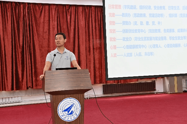 最后,孙华强作总结发言。孙华强表示,辅导员和班主任工作是学生工作中十分重要的环节,辅导员和班主任要结合学生特点、通过实践开展学生工作,包括学生的思维认知教育、专业教育、校园文化建设、创新、竞赛、就业、国际交流等方面,同时要时刻关注学生的心理健康;希望各位老师认真负责地对待学生工作,担起育人责任,与学生多接触、多交流,对自己的学生工作树立目标,帮助学生更好地适应校园生活、顺利完成学业;要求老师们充分了解学校的各项规章制度,对学生能够起到指导作用。希望在大家的共同努力下,能够有更多的同学担起建设海洋强国的使命。