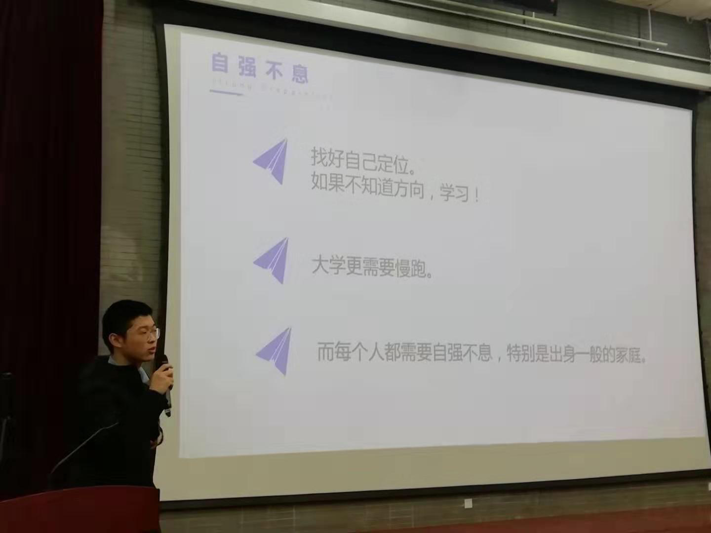 苏本学本年度获得“自强不息大学生”单项奖,目前已保送为365英国上市公司官网直博生。苏本学结合自己的成长经历,叮嘱所有同学们都要自强不息,尤其是出身一般的同学们,更要加倍努力。
