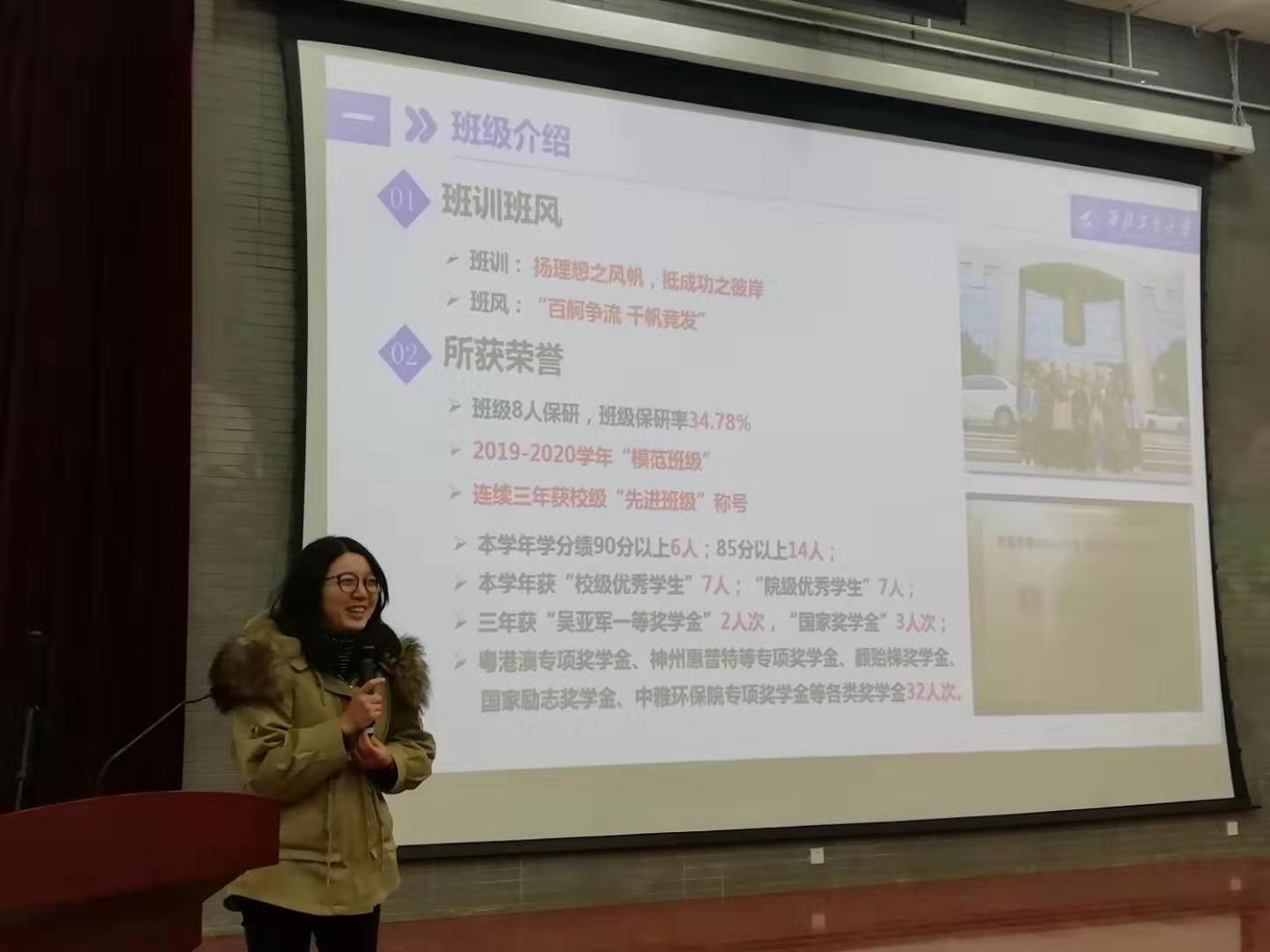 高顺丽作为“本科生模范班集体” 03081701班的代表,为同学们分享了一个优秀班集体的成长历程,介绍了同学之间如何相互帮助与共同进步,教会在场的同学们从集体的观点出发看问题。