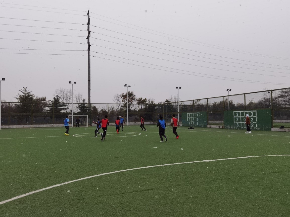 易边再战,19级7/8班联队在开场5分钟率先做出人员调整,由程淇替换上半场发挥欠佳的林茂东。对胜利的渴望激发了两边斗志,即使雪花飘洒,场上却热血沸腾,积极组织进攻,15分钟,19级7/8班高仁杰替换雷一林上场,比赛更加激烈,球员们越战越勇。仅仅三分钟过后,19级7/8班曾谭替换程淇上场,场上双方积极拼抢,赛事高潮不断,但是都未能再取得进球。最终比赛结束,比分定格到1:0。