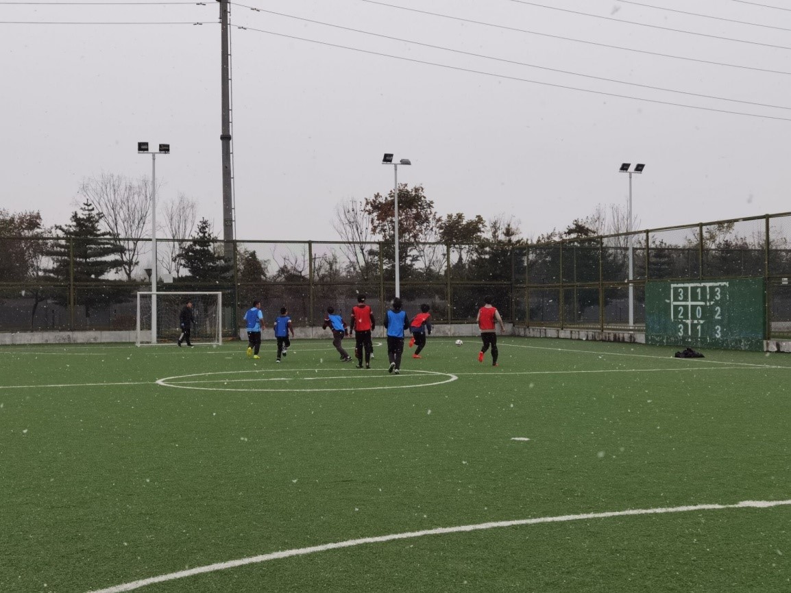 2020年12月3日365英国上市公司官网“声呐杯”小班足球赛进入第七比赛日,今天飒飒扬扬的大雪也无法遮掩同学们的激情和兴奋。在双方队长9班黄伟和7/8班联队何研的带领下,A组第三轮比赛在19级9班和19级7/8班联队之间打响。