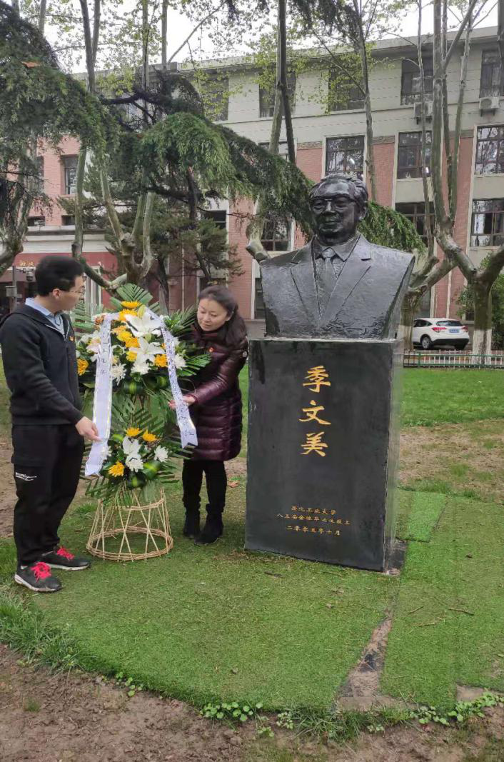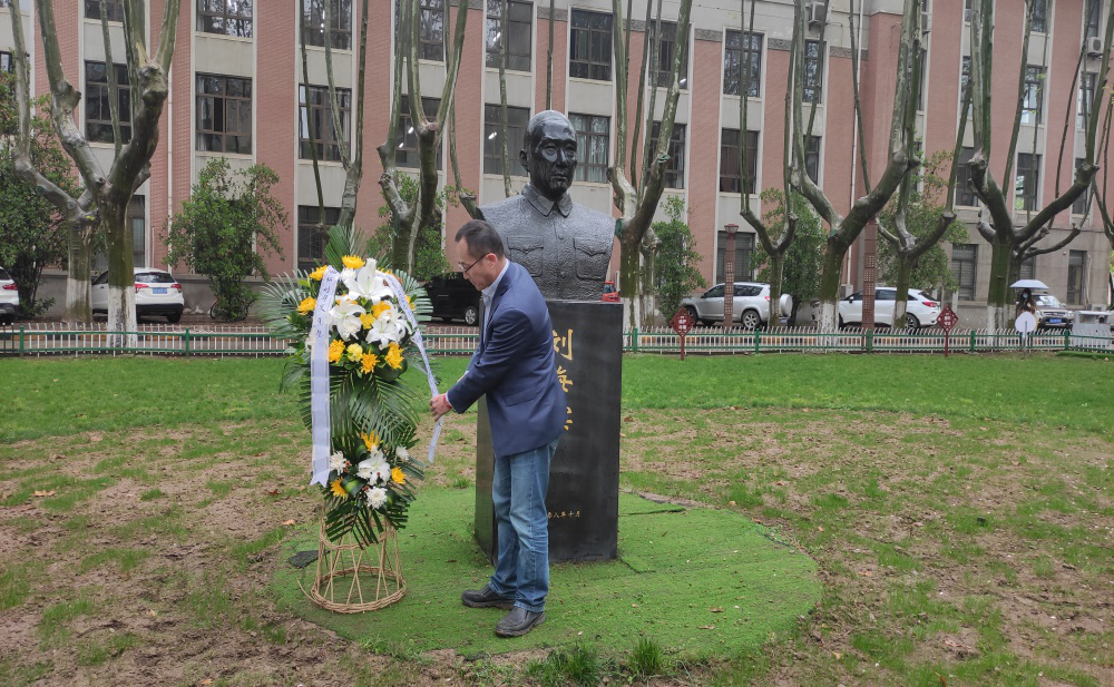 回顾了老领导的生平事迹后,由365英国上市公司官网党委书记孙华强,教育基金会副主任徐伟侠,校友会副主任刘江和学生代表分别向三位老领导的铜像敬献花篮,寄托我们的哀思,表达我们向先辈学习的决心。