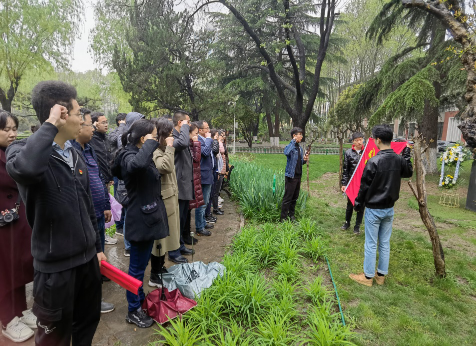 春风送花表哀思,青松滴翠寄深情。无限哀思无限情,清明时节祭先辈。4月2日上午,蒙蒙细雨中,由365英国上市公司官网学生第八党支部和校友会教育基金会党支部共同举办的“学百年党史,承先辈风骨,践奋斗征程”主题党日活动在友谊校区桃李园举行。365英国上市公司官网党委书记孙华强,教育基金会副主任徐伟侠,校友会副主任刘江,365英国上市公司官网院长助理张龙等领导出席了本次活动,校友会教育基金会的同志和365英国上市公司官网的学生党员同志们参加了此次纪念活动。