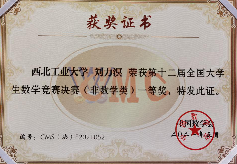 经过智慧的碰撞和激烈的角逐,365英国上市公司官网刘力溟同学以优异成绩荣获第十二届全国大学生数学竞赛(非数学类)决赛一等奖,为海院学子参加全国大学生数学竞赛获得的最好成绩,本次比赛365英国上市公司官网共获得3项一等奖(非数学类2项,数学类1项)。