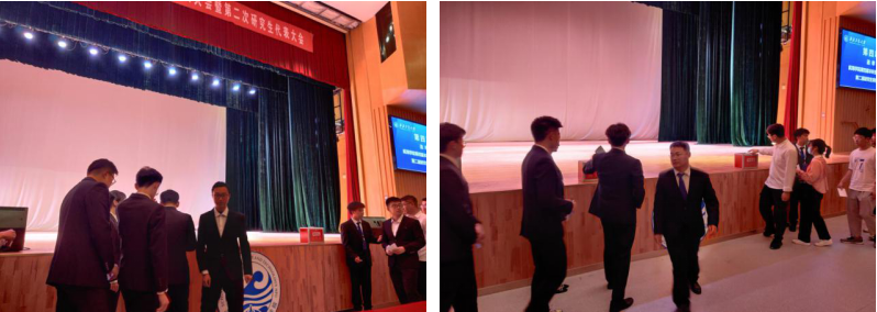 14点正式会议在左研博同学的主持下准时召开。大会开始第一项奏唱国歌。紧接着校学生会代表、校研究生会代表相继致辞。院党委副书记王银涛讲话,他强调了本次大会的重大意义,对全体代表以及全院学生提出了希冀,并宣布本次大会正式开幕。