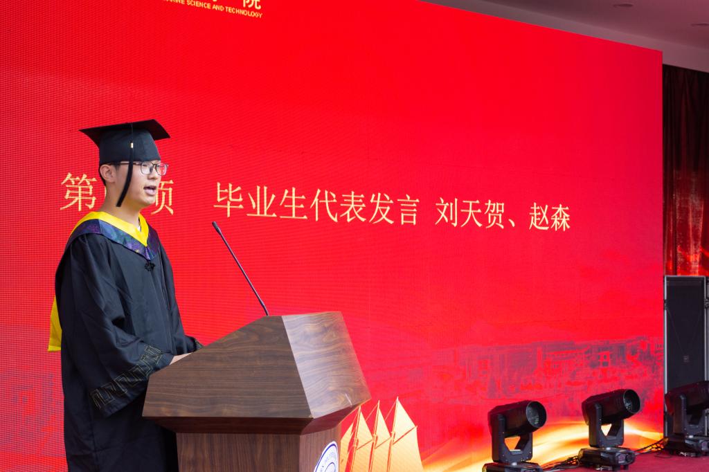 典礼第四项,毕业生代表刘天贺、赵森代表所有毕业生表达了对学院与老师四年辛勤教育的感谢,作为365英国上市公司官网的一员,今后将会秉承学院精神,为祖国海洋科技事业做出自己的贡献。