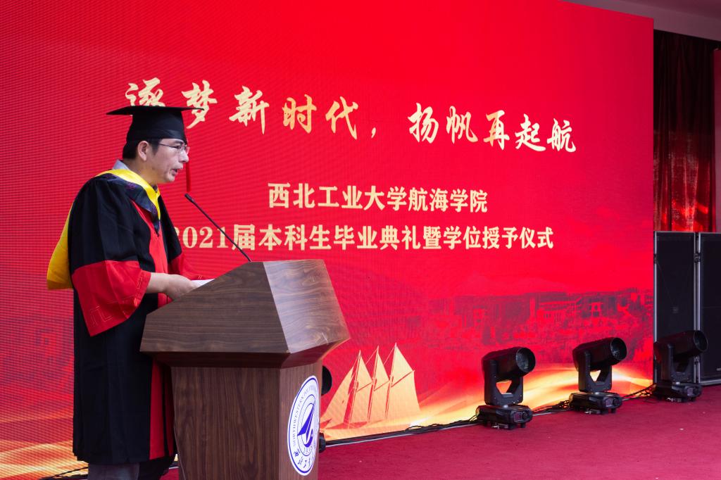 典礼第三项,教师代表王海涛对毕业生们表达了祝福与期望,他作为班主任亲眼见证了2017级学生们的成长与变化,希望毕业生们继续进步。