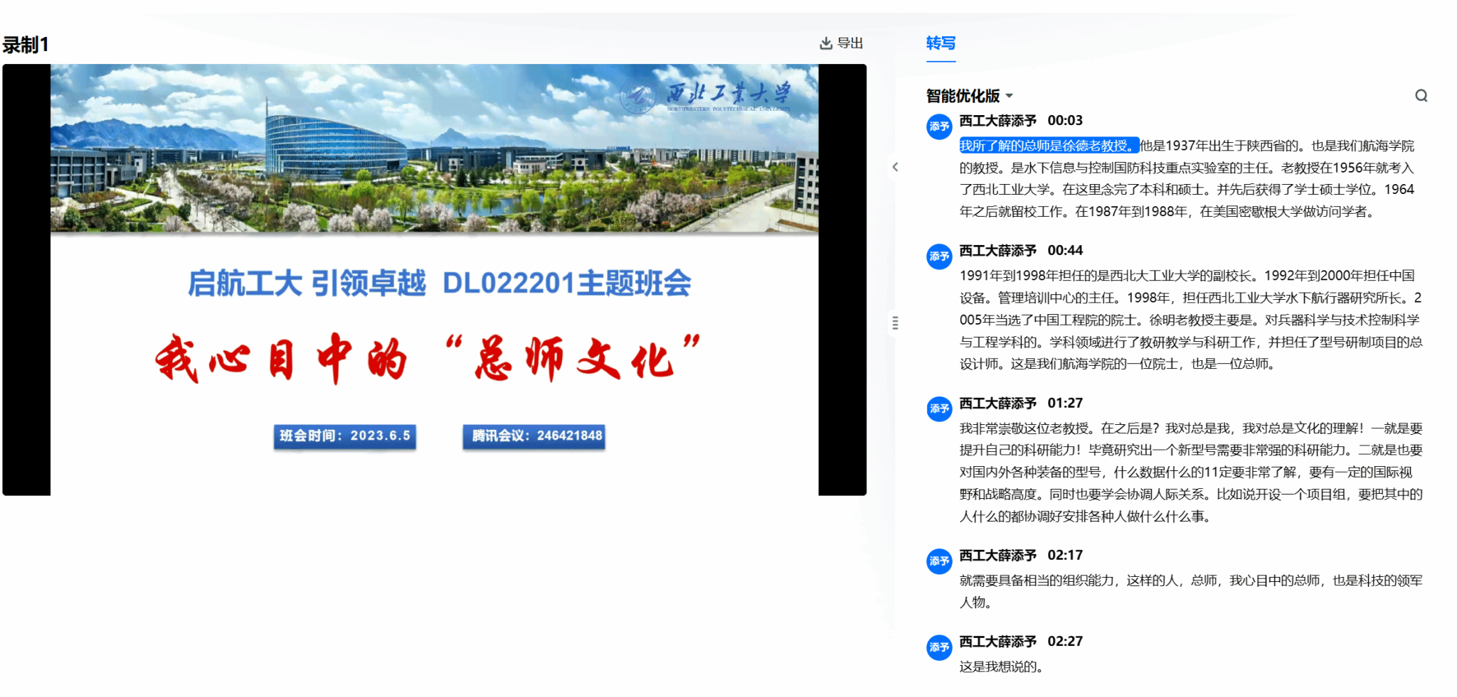 随后班上各位同学也就总师文化、人才培养等方面提出了自己的看法,大家在交流中不断树立起自己对于总师文化的理解,并立志要向总师看齐,以高标准要求自己,力求成为祖国的高级人才乃至国家的栋梁。
