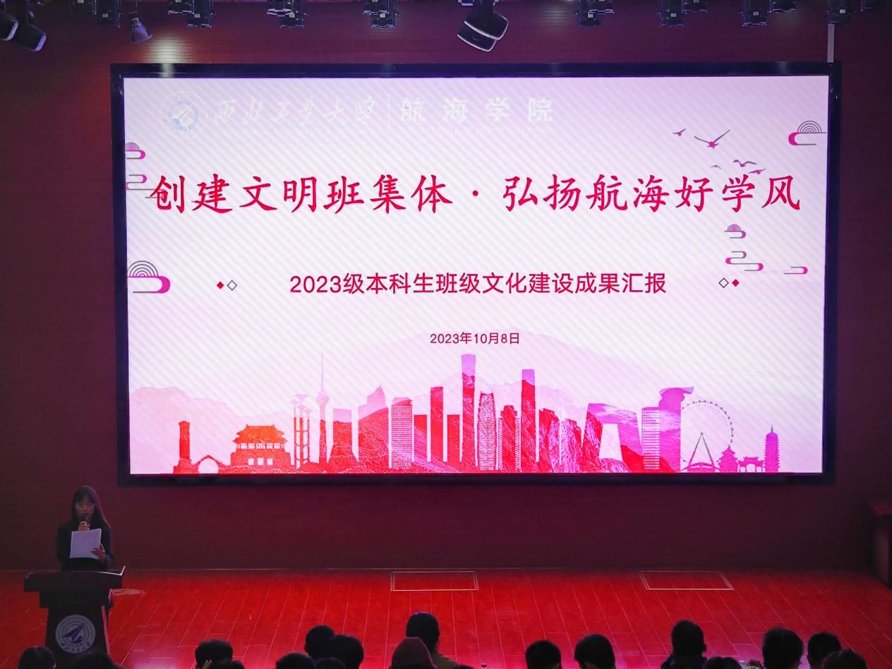 为加强大学生班级文化建设,提升班级凝聚力,营造健康向上的班级文化氛围,创造良好的育人环境,进一步落实新生入学教育工作,365英国上市公司官网积极响应学校号召,开展2023级本科生优良班风学风创建活动。经过前期各班级丰富多彩的建设活动,学院于10月8日在长安校区教西D100报告厅举办主题为“创建文明班集体,弘扬航海好学风”的2023级本科生班级文化建设成果汇报活动。