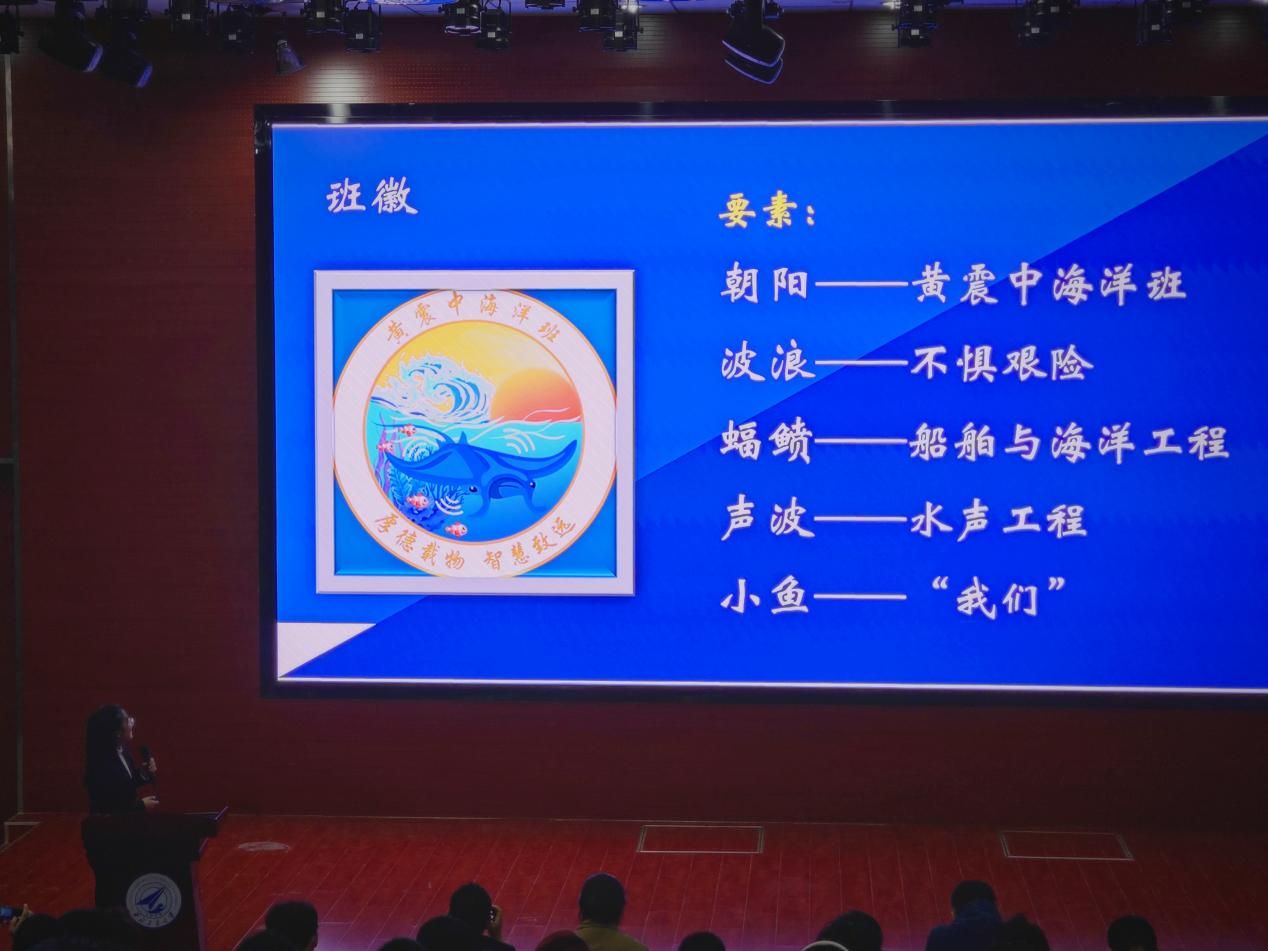 各班级代表围绕组织建设、思想政治教育、学风建设、班级管理、班级活动等内容对班级建设整体情况进行了汇报,通过生动的图片、图表和视频等多种形式展示各自班级的特色和亮点。尤其是班徽、班旗和班服的设计部分,各班级围绕其中设计的巧思、丰富的元素、深刻的寓意进行了深入解读,不仅体现了学院的“航海”特色,也展现了班级的良好风貌。此外,同学们也通过班歌合唱、诗歌朗诵、舞蹈表演等各种方式向在座评委和同学们展示班级风采,呈现出充沛的活力。