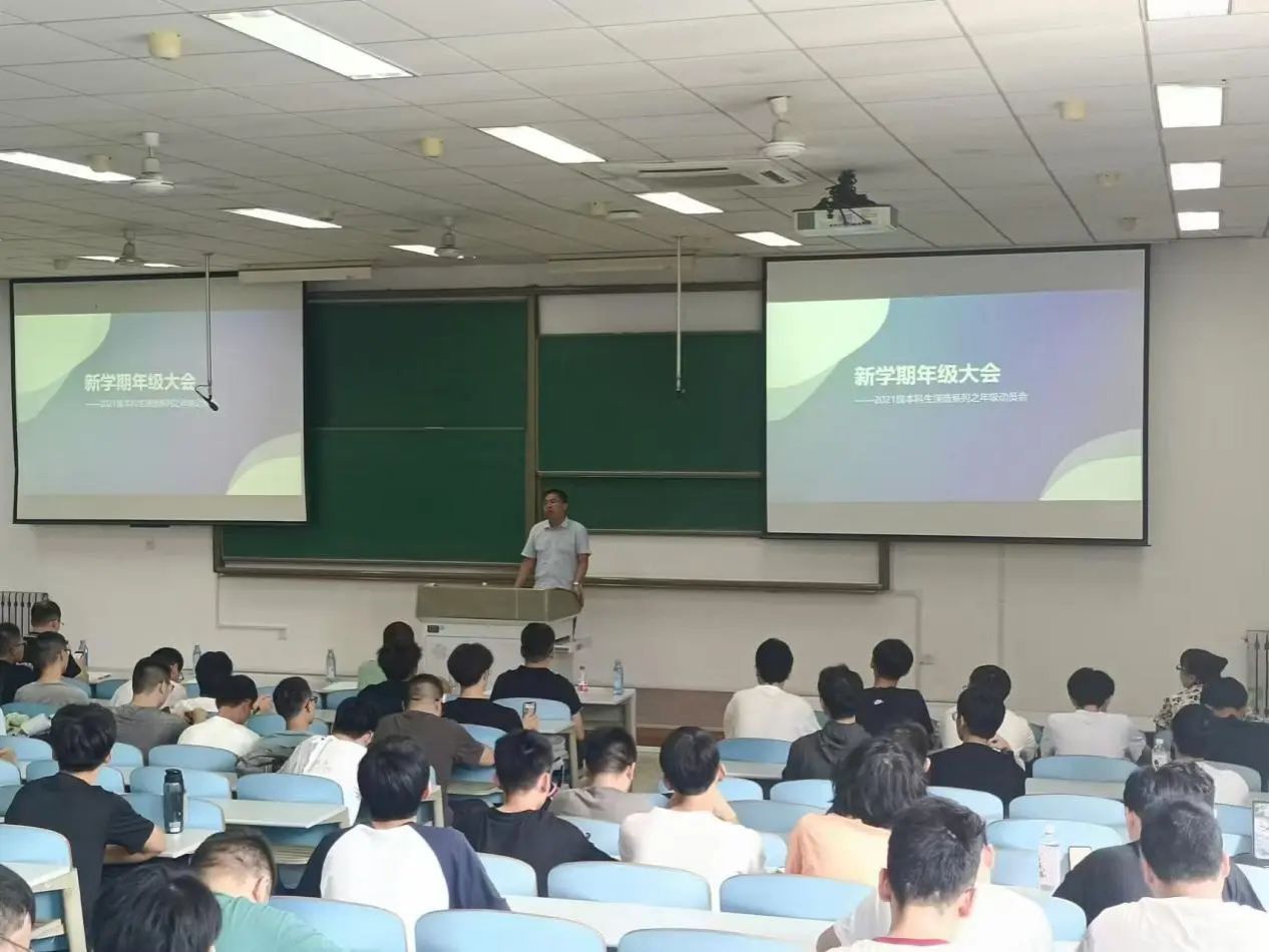 8月31日,365英国上市公司官网召开了2021级本科生新学期年级深造动员会。党委副书记王银涛、院长助理耿云辉、任树伟,班主任代表牛云、辅导员赵维娜以及全体2021级本科生参加会议。会议由赵维娜主持。