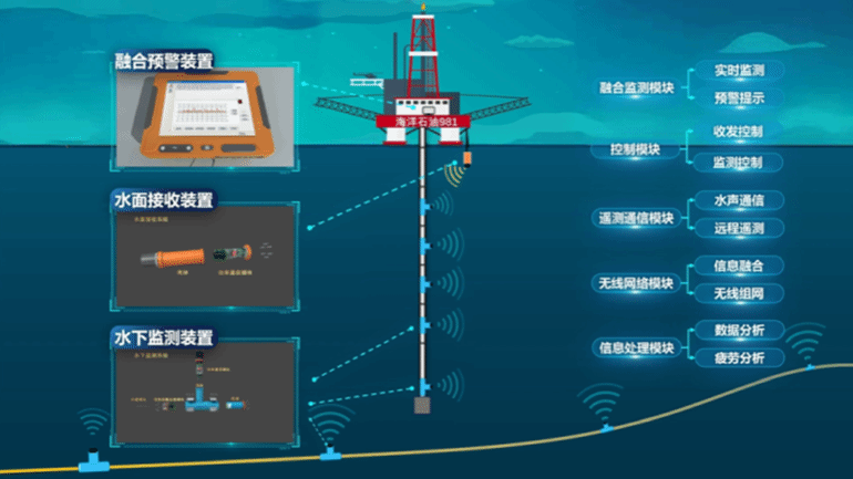 在国家能源安全战略中,海洋油气资源开发占据重要地位。“智护蓝疆”项目针对海洋油气管线安全监测的迫切需求,成功研制了我国首套海洋管线网络监测系统。它具有完全自主可控的软硬件系统,可对钻井立管和海底横管的振动参数等进行实时采集,通过无线水声传输实现网络化融合监测。产品已成功应用于深海油气勘探开发作业的安全监测,在我国“奋进号”和“兴旺号”等钻井平台进行了多次现场应用,并得到了用户的高度认可,中央电视台等主流媒体报道:关键技术打破国外垄断,产品填补国内空白。