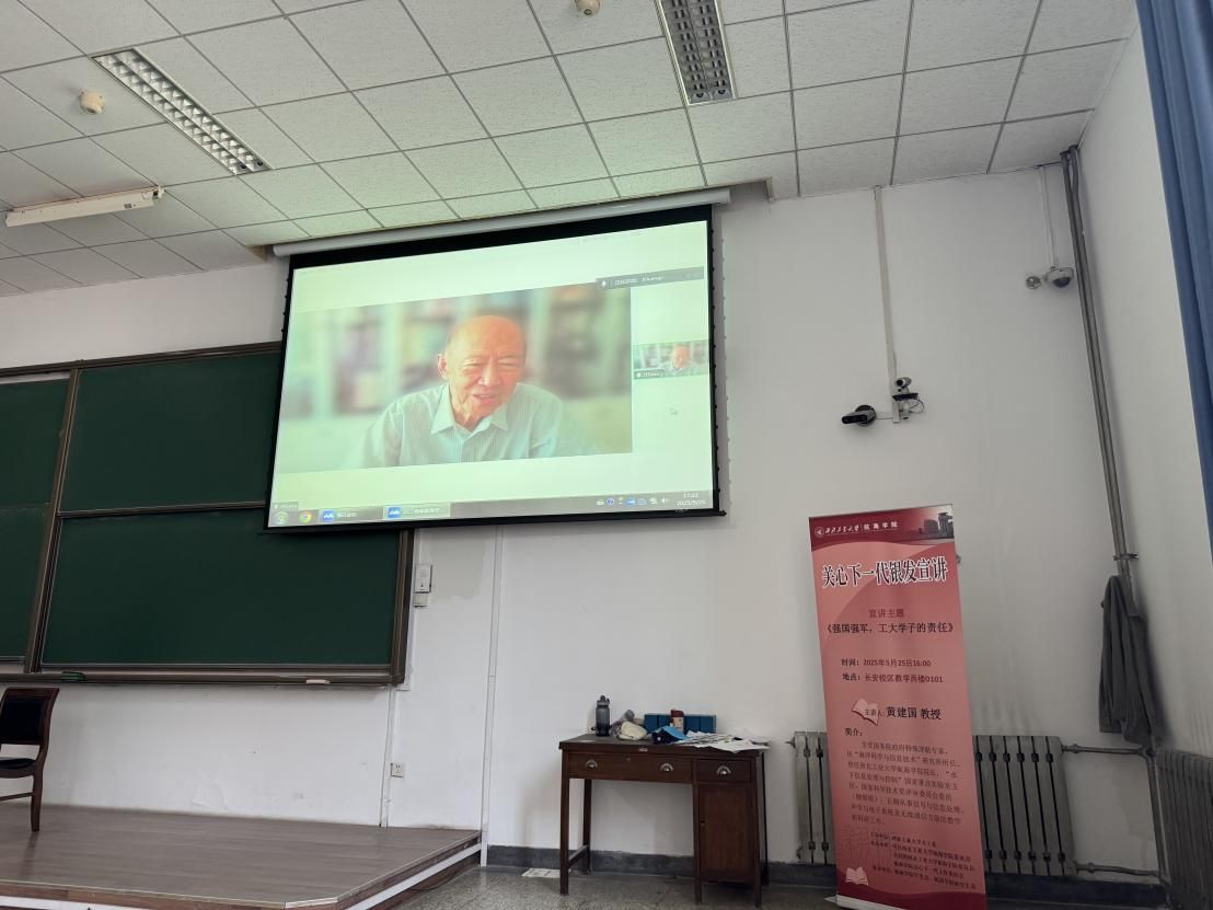 2025年5月25日,由365英国上市公司官网关工委主办,365英国上市公司官网党委、365英国上市公司官网团委、365英国上市公司官网关工委承办的“关心下一代银发宣讲”课程在长安校区教学西楼D101顺利举行。365英国上市公司官网原院长黄建国教授受邀主讲,以《强国强军,工大学子的责任》为题,为现场师生带来了一场极具思想深度与现实意义的精彩课程。