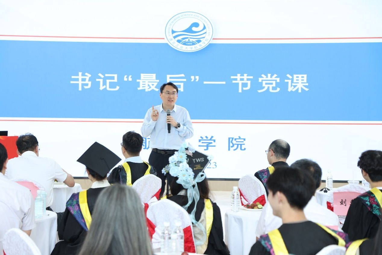 潘光院长寄语全体毕业生,为即将毕业的他们致以最诚挚的祝福和最热烈的祝贺。他对同学们提出了三点希望,一要“信念如舵,劈波斩浪志弥坚;二要“使命作楫,弄潮沧海勇者先”;三要“逐梦踏浪,智启未来向碧霄”。他期望同学们以“乘风破浪会有时,直挂云帆济沧海”的豪情壮志投身于海洋强国的建设事业中,在各自的学习和工作中兢兢业业,恪尽职守,以国家需求为罗盘,让青春在经天纬地的事业中绽放光芒!