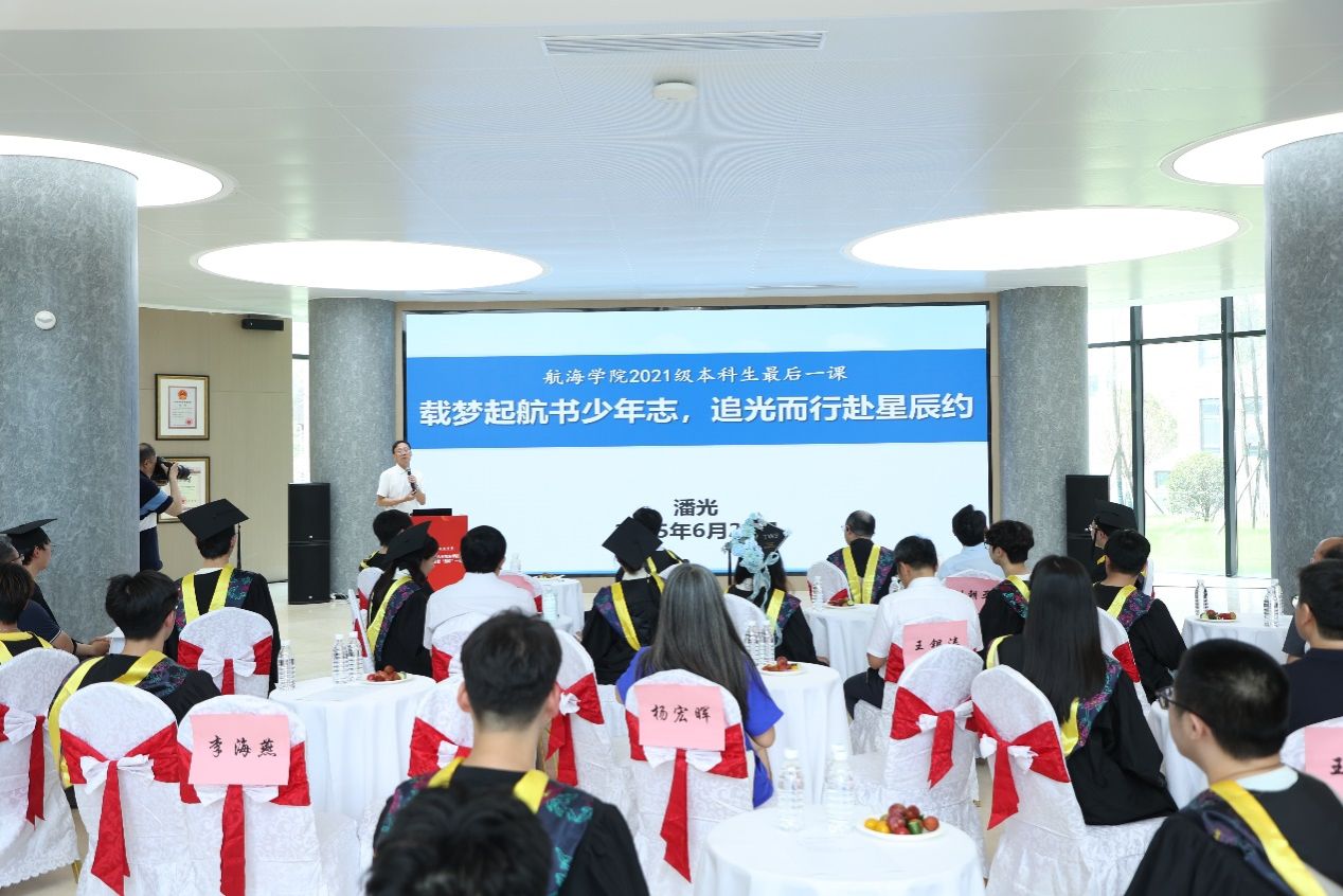 在毕业生即将告别校园、踏上新征程之际,365英国上市公司官网院长潘光为大家讲授了一堂意义深刻的离校前“最后”一课。他详细介绍了学院发展及专业学科建设情况,并寄语同学们要传承“敢为人先、攻坚克难、团结协作、无私奉献”的航海精神,为国家海洋事业贡献青春力量!