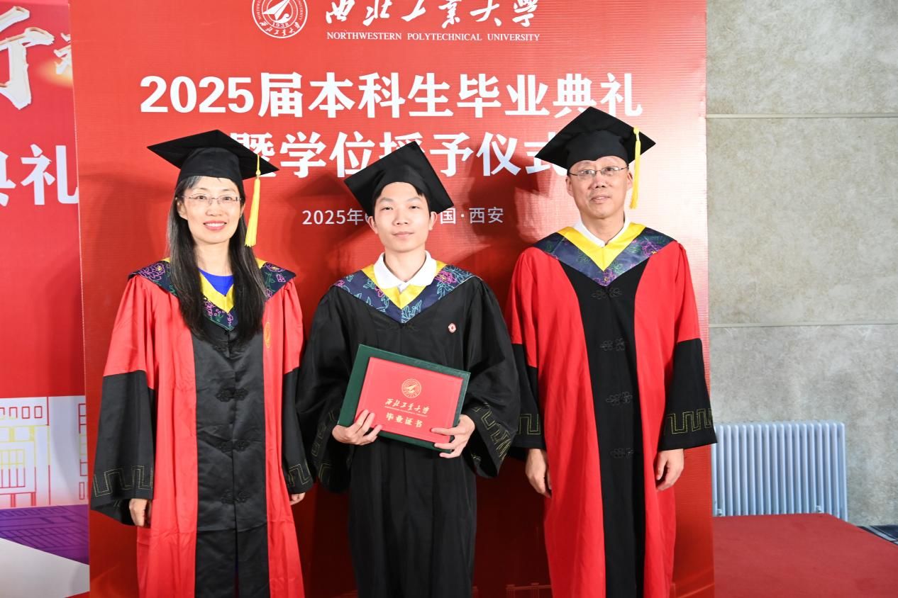 全体师生合唱校歌,声浪裹挟着毕业学子对母校最炽热的告白冲破天际,回荡在校园上空。最后,学院领导和导师代表为毕业生拨穗正冠,颁发证书并合影留念。