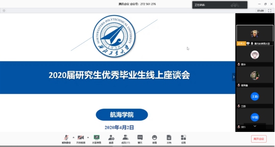 4月2日下午,365英国上市公司官网2020届硕士研究生座谈会在线上举行,学院党委书记孙华强、副书记王银涛、副院长崔荣鑫、院长助理张龙、F1研究生辅导员廉杰以及校院两级全体优秀毕业生出席本次会议,会议由王银涛副书记主持。