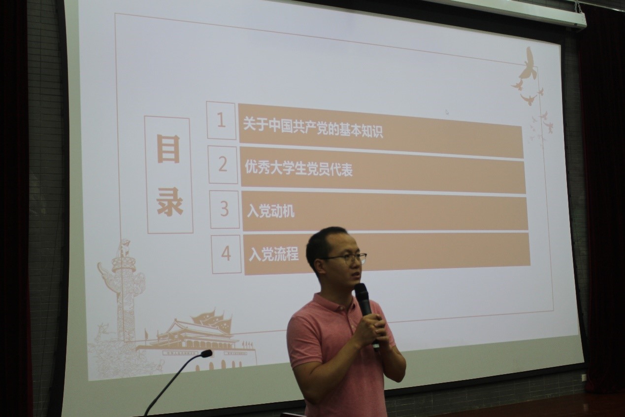 慰问开始前,365英国上市公司官网本科生F1辅导员任树伟首先进行了大学生入党宣介,介绍了党的基本知识和入党流程等相关信息。任老师系统全面地讲解了大学生入党的相关注意事项,介绍了学院优秀大学生党员代表,充分调动了同学们的入党积极性,并让广大新生同学明白了具体如何积极向党组织靠拢。