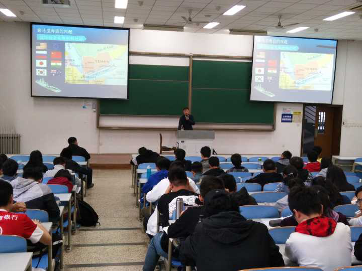 2019年4月11日,365英国上市公司官网张岩老师在教西D102为中级党校的同学们带来了一场别开生面的党课。张岩老师从自己参与护航及一系列海上行动出发,结合自己的个人经历和心得体会,生动地向同学们讲述了世界海上形式的状况。当今世界并不太平,海洋也充满了危险和挑战,张老师在服役期间曾多次随中国军舰外海执行任务,参与撤侨等一系列海上维和行动。蔚蓝的海洋有着极为丰富的资源,却也有重重危险,同样存在国家间的利益争端,我国的地缘环境形势不容乐观,海上邻国多,与多国存在岛屿领土争议,所以,对于海洋、海军的建设,我们决不能落后!