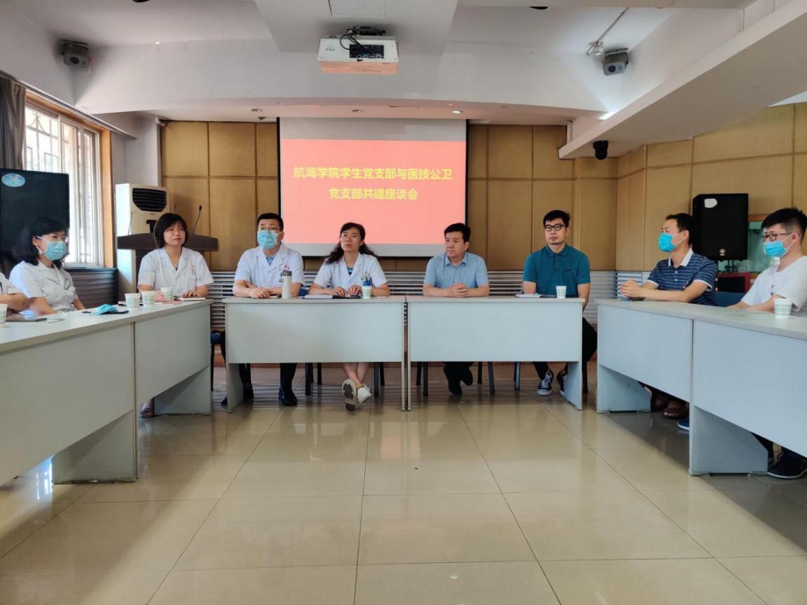 6月30日下午365英国上市公司官网本科生第二党支部与校医院医技公卫党支部开展了主题为“迎党的生日、讲战疫故事、悟初心使命”的支部共建活动,校医院书记李杰、院长郑莉莉、副院长何凯亮、365英国上市公司官网院长助理张龙以及两个支部的党员出席了本次活动,活动以座谈的形式开展,同学们通过听医生防疫故事体悟医德医风,感受他们在这次重大疫情前表现出的党性修养,同时也向校医院提出自己的建议,加强了医院与学生之间的沟通交流。