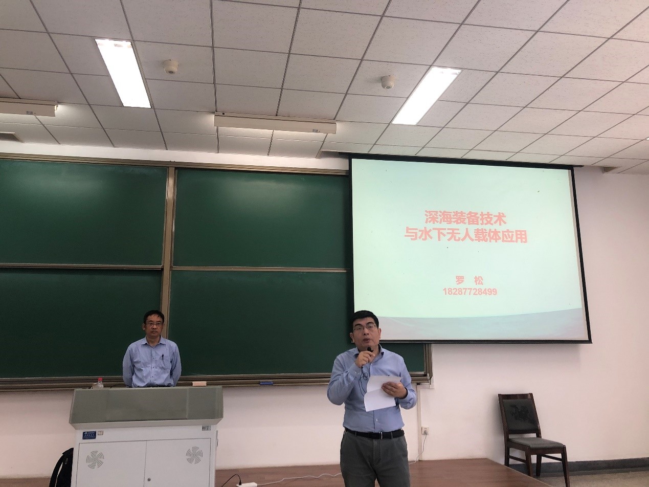 2022年5月6日下午14:00,在长安校区教西D201和教西D202教室迎来“感悟深蓝”课程第二轮的第三讲,由我院杰出校友、中船集团七五〇试验场副总工程师、技术总监罗松研究员主讲,主题为《深海装备技术与水下无人载体应用》。海洋工程类及其他学院共330余名一年级学生到课,365英国上市公司官网副院长曾向阳全程听课,并在课前详细介绍了罗松研究员的事迹。