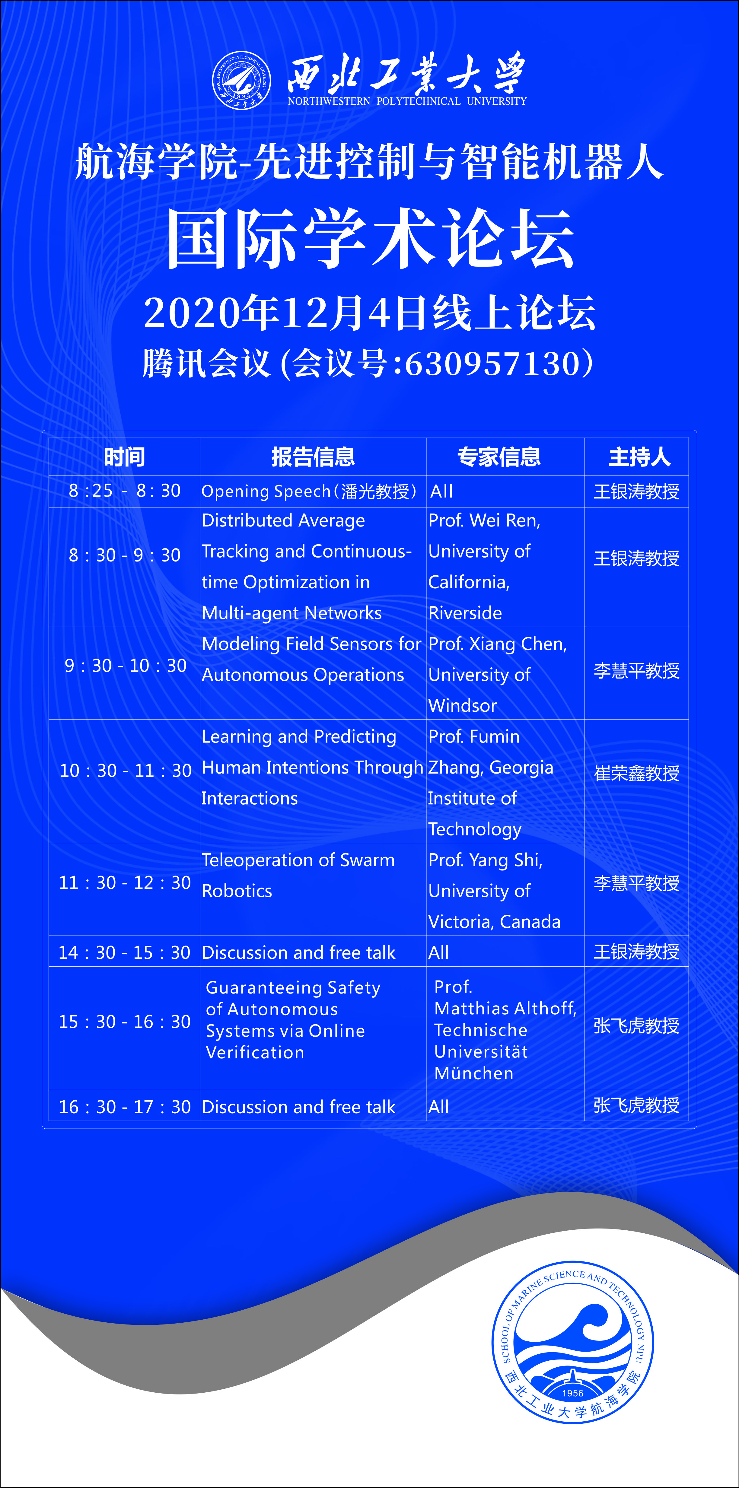 International Academic Forum of Advanced Control and Intelligent Robot by School of Marine Science and Technology