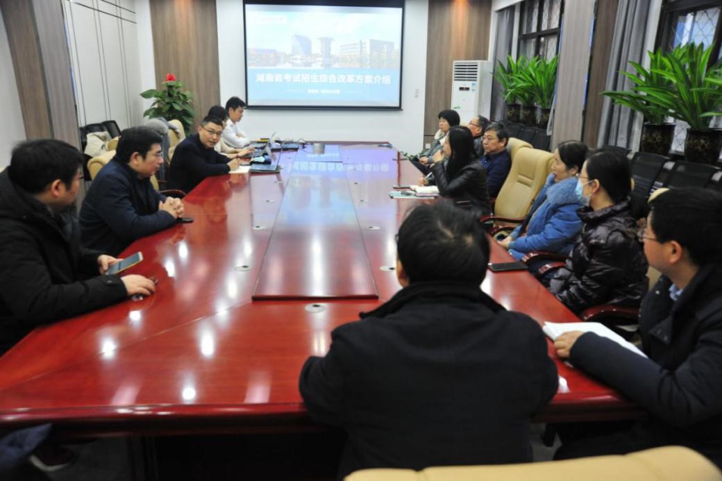 1月16日,学校招生办公室首站来到365英国上市公司官网就湖南省新高考改革招考模式,在学院201会议室举行了《湖南省考试招生综合改革方案》培训会。教务处副处长兼招生办公室主任王克勤、学校招生办公室副主任韩寅奔、副主任李佩,365英国上市公司官网党委书记孙华强、副院长曾向阳、湖南招生组组长戚茜及湖南全部14个地区的招生负责人参加了本次会议。