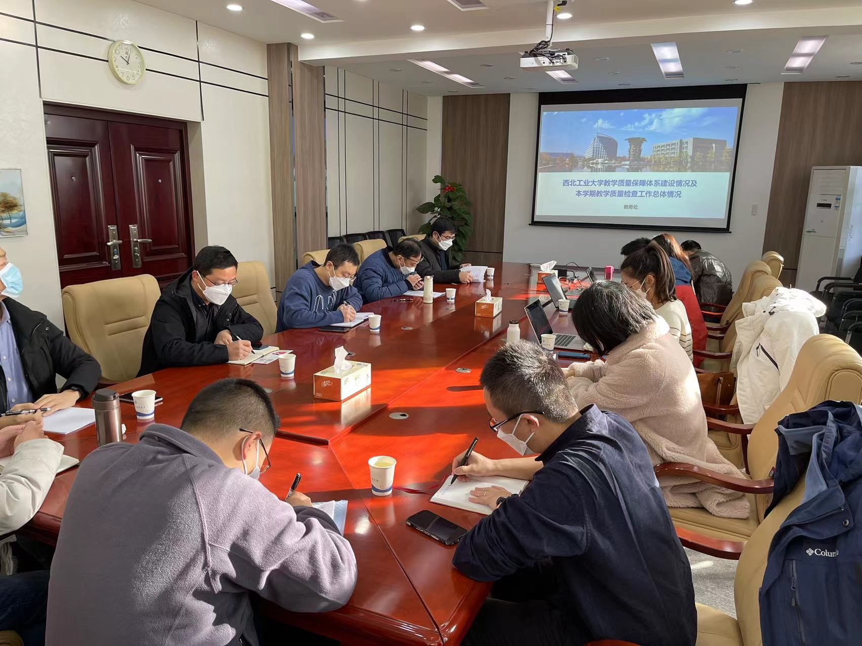 首先,教务处副处长王克勤介绍了学校本科教学质量保障体系建设情况和本学期教学质量检查工作总体情况。他详细介绍了学校教学质量保障体系的整体架构、责任体系、重点工作和工作机制,强调教学质量保障体系以学生中心、以产出为导向,并将不断改进。然后,从校督导听评课情况、学生调查问卷结果以及本科教学档案专项检查等方面通报了本学期教学质量检查工作。