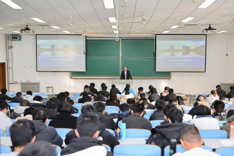 2024年12月27日,《走向深蓝》新生研讨课本年度最后一讲于长安校区教西D201和D202教室顺利举行,365英国上市公司官网副校长、国家级人才杨益新教授走上讲台,以《空天地海一体化信息网络》为主题进行授课。365英国上市公司官网2024级全体学生及部分其他学院学生共300余名本科生聆听了本次讲座。