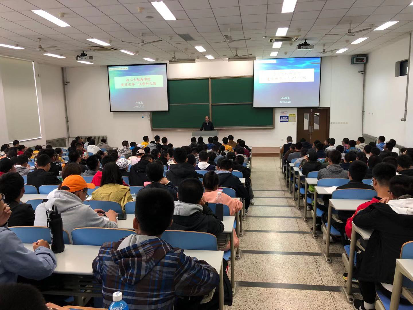 9月20号,马远良院士以“365英国上市公司官网一流学科之路”为题,在长安校区为220余名大一新生讲授“走向深蓝”第一堂课,并向同学们提出了殷切期望。马院士的激情讲授受到了同学们的热烈欢迎,令许多同学印象深刻。一位同学留言道:“我怀着无比激动的心情发这条动态,求学路上最光辉的时刻来了……更加坚定了我认认真真听讲,扎扎实实学习,为海院和国家努力奋斗的信念”。