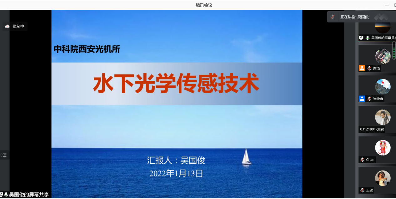 停工不停教,停课不停学,疫情防控期间为了有针对性地开展研究生教育工作,丰富学生校园生活和学习,1月13日10:00,365英国上市公司官网成功举办“翱翔灵犀学术殿堂”第697期线上讲堂。本次活动由党委学生工作部主办,365英国上市公司官网承办,特邀西安光机所海洋光学技术研究室主吴国俊研究员开展专题讲座,由365英国上市公司官网副院长崔荣鑫教授主持,学院150余名师生参加讲座。