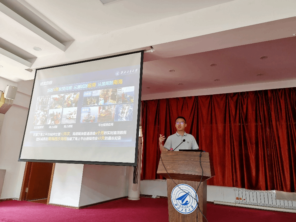 之后,2018级博士研究生马石磊展示了入围中国国际 “互联网+ ”大学生创新创业大赛国赛的优秀项目——“海管哨兵——海洋油气管道安全预警监测系统领军者”,并对项目攻坚克难的历程以及比赛经验进行了分享。让新生同学们了解到解决国家重大需求的艰辛与成就感,并直观的感受到了如何让人 “听得懂、记得住、信得过” 自己的研究成果。