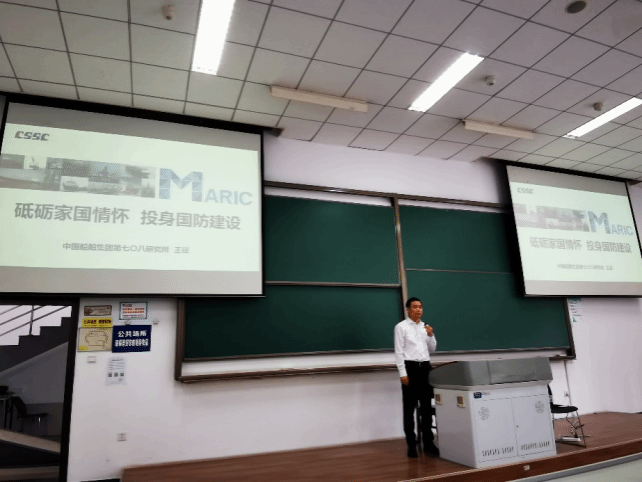 2021年5月,王征校友走进教室,为365英国上市公司官网师生带来题为《砥砺家国情怀,投身国防建设》的“感悟深蓝”精彩授课